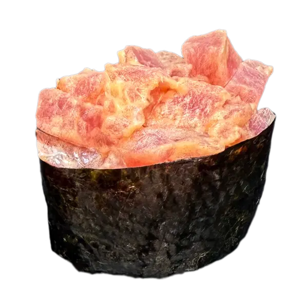 Гункан «Спайси тунец» – пикантное сочетание свежего тунца, острого соуса спайси, рассыпчатого риса и хрустящих ароматных водорослей нори.