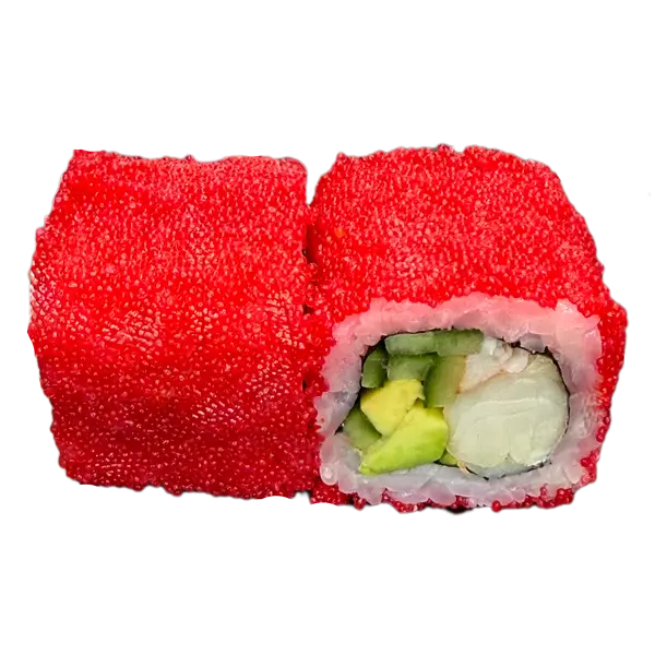 Рис, нори, вареная креветка, огурец, авокадо, икра масаго, огурец.