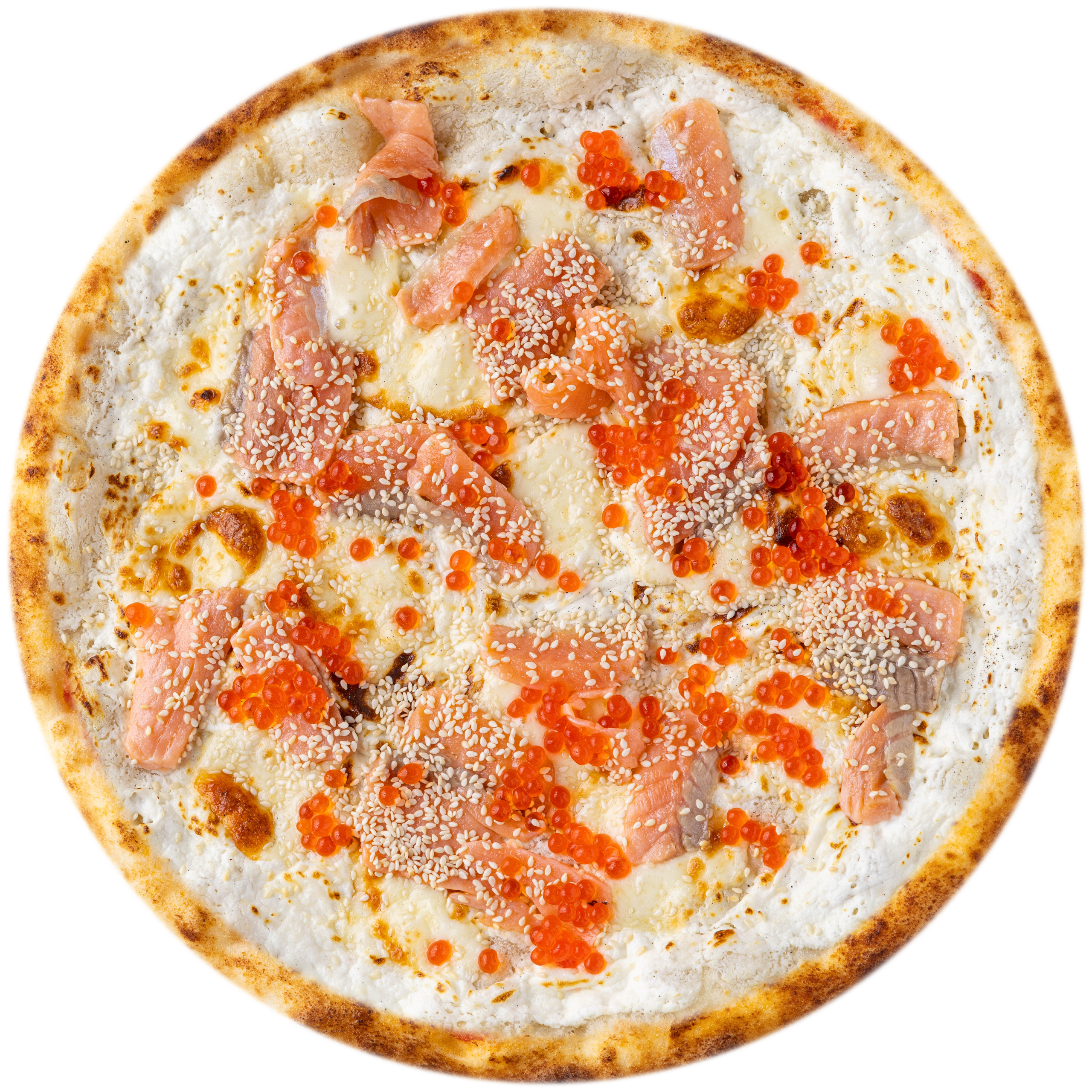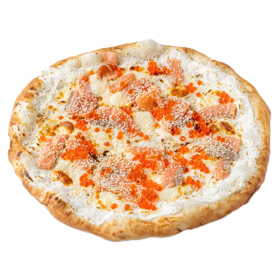 Пицца «Филадельфия» — это сочетание нежного соуса из сливочного крем чиза, тонких ломтиков лосося, красной икры и нежного сыра страчателла на хрустящей основе с добавлением кунжутных семян. Каждый кусочек дарит освежающий вкус и изысканную текстуру, идеальную для любителей легких и деликатных блюд.